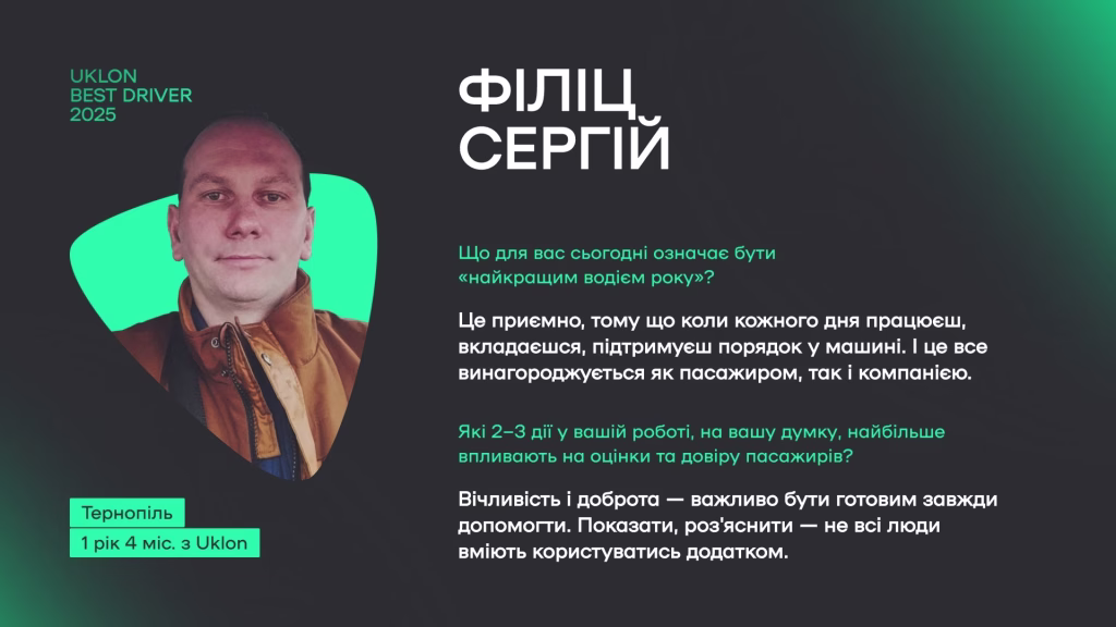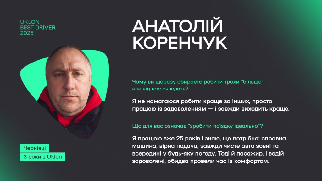 «Наша мета — створювати сервіс, яким хочеться користуватися щодня, і це було б неможливо без надійної спільноти водіїв-партнерів. Саме вони щодня забезпечують не просто поїздки, а життєво важливі зв’язки: допомагають людям вчасно дістатися до роботи, завершити справи чи обійняти близьких. Проєкт Best Drivers 2025 підкреслює, що робота водіїв — надзвичайно важлива для міста, для людей і для нас!»,