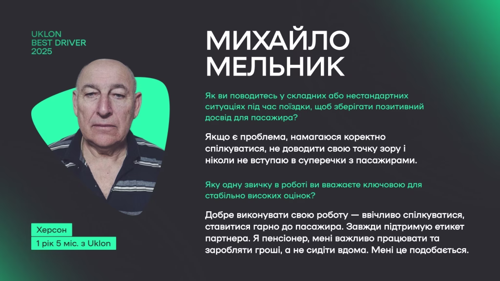 Щодня водії-партнери Uklon активно рухають світ і підтримують сервіс на високому рівні. Саме тому ми запустили Best Drivers 2025 — щорічну відзнаку для водіїв, які демонструють найкращі результати впродовж року.