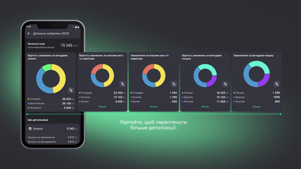 Ми також потурбувалися, щоб водіям, які співпрацюють з нами через ФОП, було ще зручніше аналізувати ефективність та готувати звітність. Окрім усіх вищеперерахованих можливостей, їм також доступні: