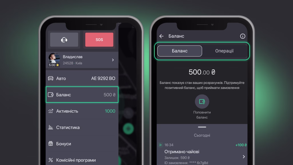 4️⃣ Комісія сервісу Uklon за виконане замовлення автоматично списується з коштів у вкладці Баланс.
