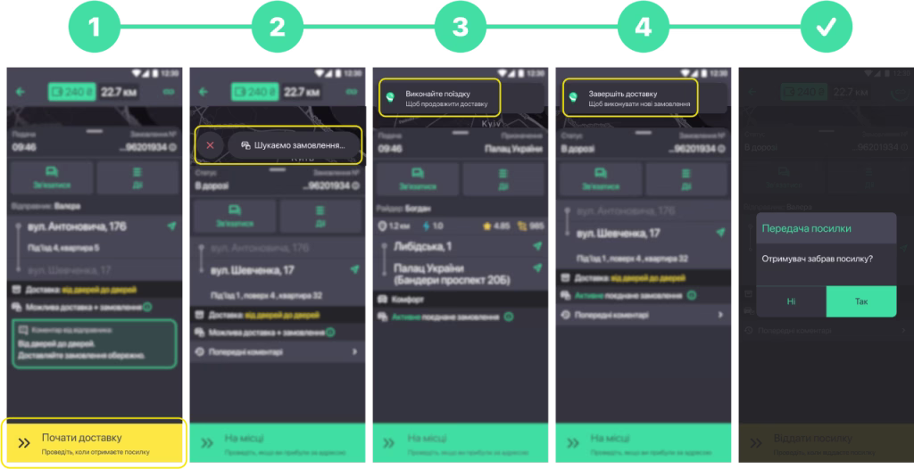•  Якщо по маршруту так і не знайдено підходяще замовлення для поєднання, пошук зупиниться автоматично, коли ви прибудете до отримувача.