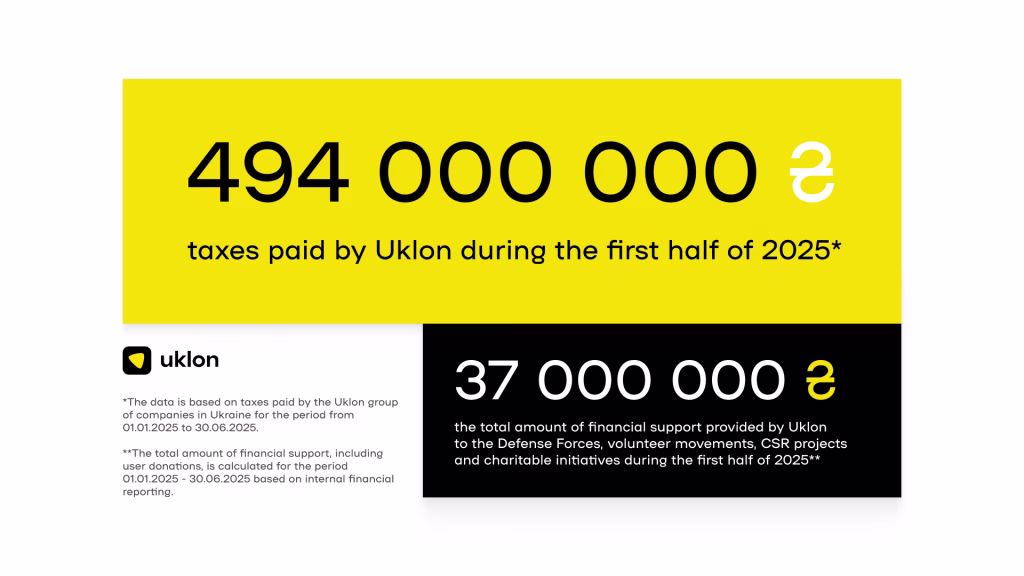 Uklon Contributes Nearly Half a Billion UAH in Taxes During First Half of 2025